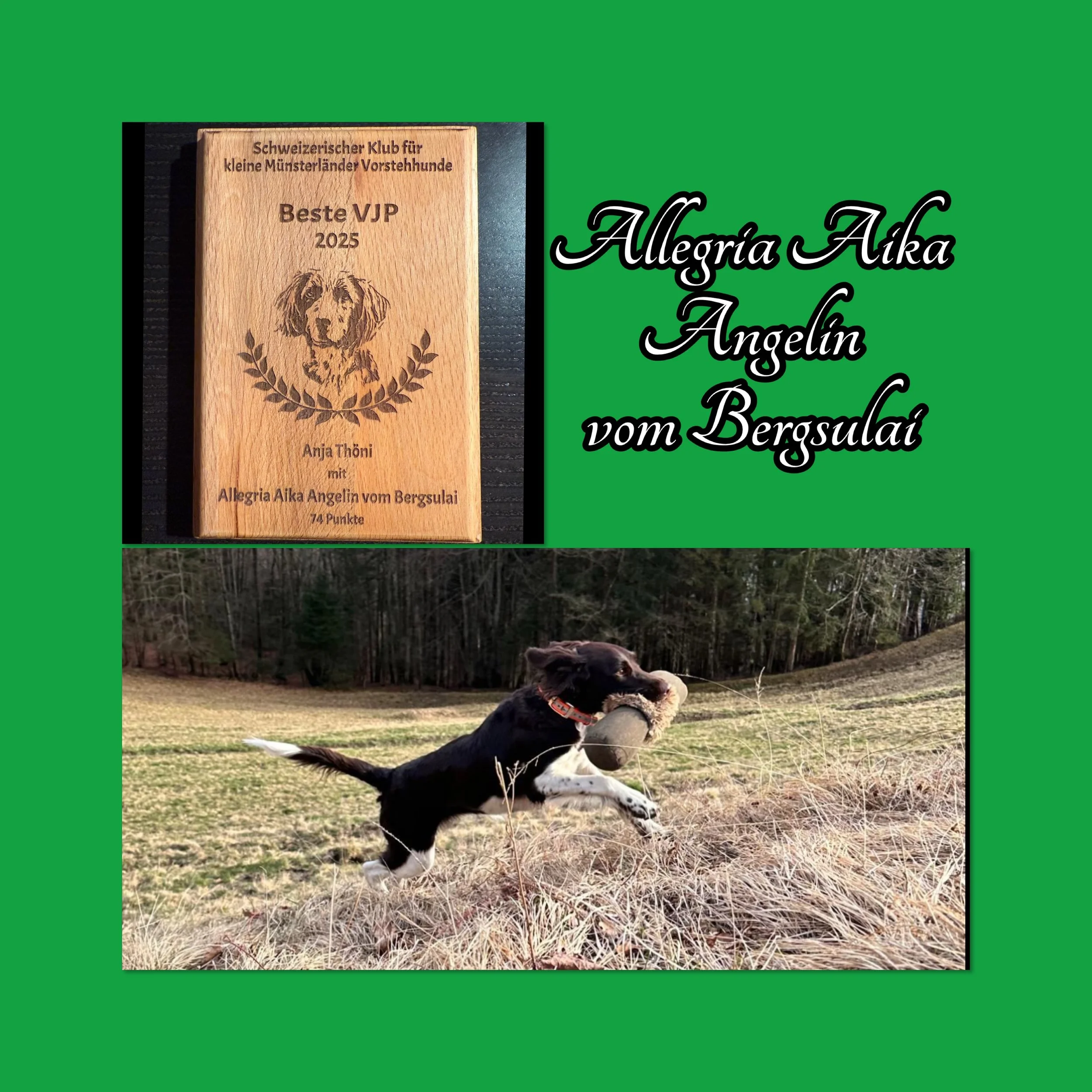 Allegria Aika Angelin von Bergsulai erhielt letztes Wochenende die Auszeichnung zum besten VJP Ergebnis des KLM Schweiz Vereins. Geführt von Anja Thöni.
